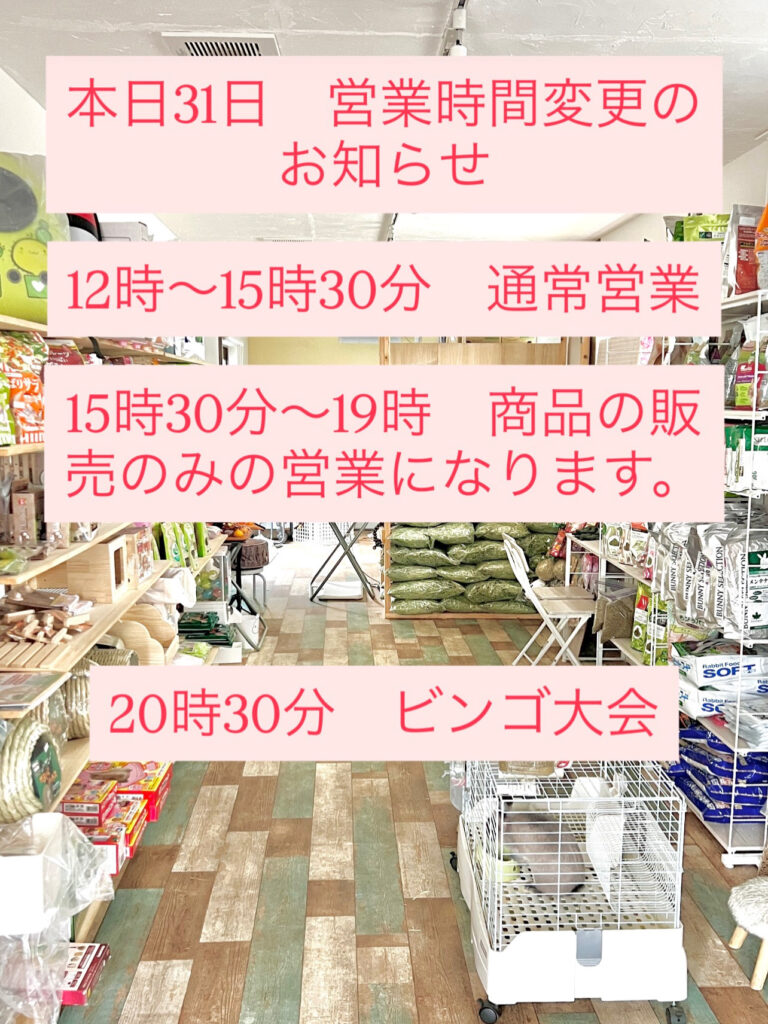 2025.10.3131日 営業時間変更のお知らせ ブログ Post Share Hatena Line Pocket RSS feedly Pin it この記事のタイトルとURLをコピーするScreenshot 先日のうさんぽ会 ご参加ありがとうございました。前の記事 11月の写真は紅葉です。次の記事